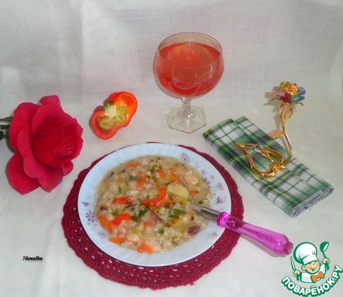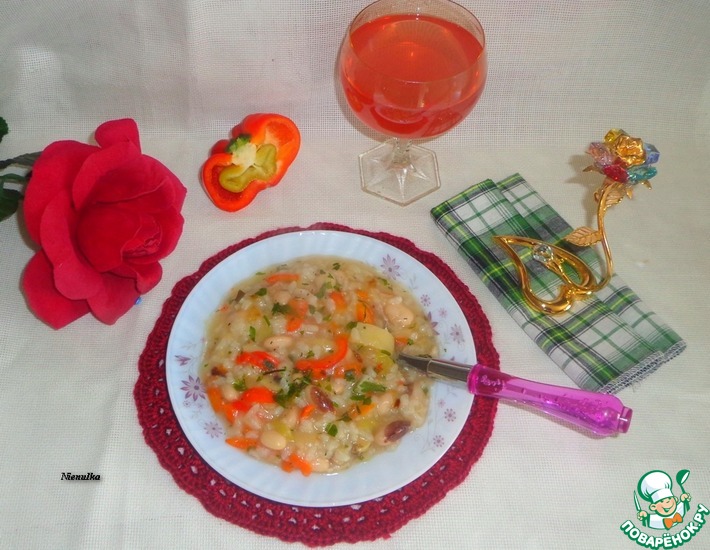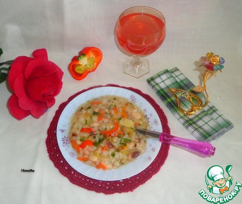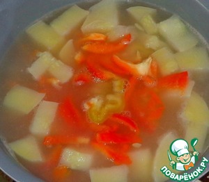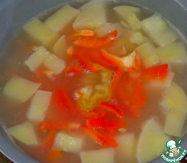 Порезать соломкой болгарский перец. Добавить перец и фасоль. Проварить 10 минут.