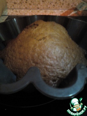 Печём при 190гр 40 минут в ровной форме, 50 минут - в такой как у меня. И... ничего себе как пирог вырос!!! Это конечно не плохо, он высокий, но ведь есть риск, что он лопнет сверху, вот поэтому лучше, чтобы форма была с ровными стенками...