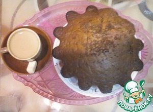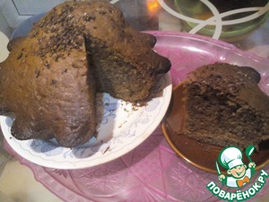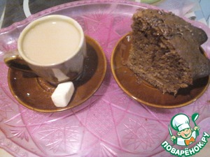 Нашла его давно в журнальной вырезке, а готовить не хотелось, думала - наиобычнейший пирог. А зря! Пирог очень нежный, пушистый и шоколадно-ароматный! Печься он должен в прямоугольной форме, но у меня опять же такой не было, поэтому пекла на 10 миут дольше, так что не пугайтесь длительного времени - в ровной форме будет быстрее и пирог того стоит!