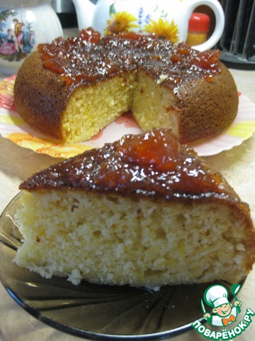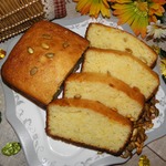 [+5]Брала двойную норму сразу, только сахар не увеличивала, а добавила мед 1ст.л, и вместо ликера цедру лимона, пекла в мульте 1 час. На фото разрез еще почти горячего манника, - никак не удержалась)), такой аромат был обалденный, - кусище этот слопала сразу с чаем (вся моя диета летит к чертям))), да, и верх еще горячего пирога смазала домашним джемом из тыквы+яблочки.