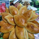 Перед выпечкой смазать пирожки яйцом, взбитым со сливками. Старайтесь убрать потеки яйца с бумаги, иначе яйцо пригорит.
