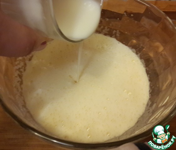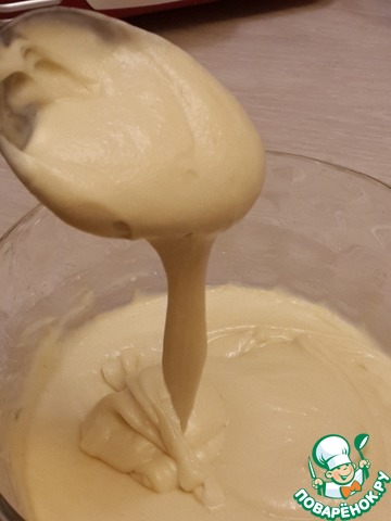 Тесто получается нежное, льющееся, похожее на бисквитное