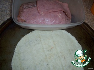 сверху раскладываем ветчину и сыр для сэндвичей, если нет такого, то можно другой любой,