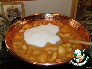 Когда айва разварится, всыпать сахар.