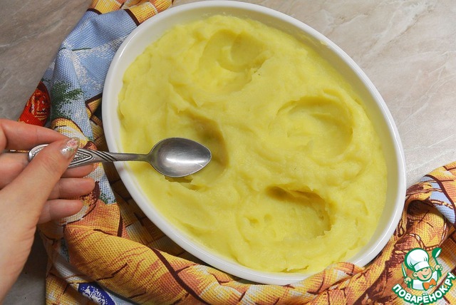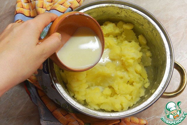 Влить сливочно-картофельную юшку в будущее пюре и