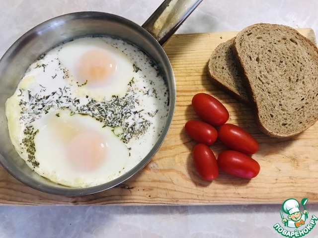 Сверху посыпать измельченным эстрагоном (тархуном). Поставить в духовку, разогретую до 190-200 градусов, и запекать блюдо 10-20 минут (время зависит от того, какой «крутизны» яйца вы предпочитаете).