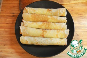 Скатать трубочками и выложить на блюдо.
