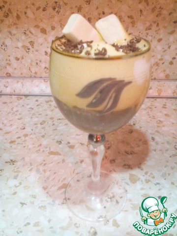 В оригинале украшается жареными кофейными зёрнами, но у меня их не было, так что я подала с тёртым кофейным шоколадом и маршмеллоу - мне очень понравилось |