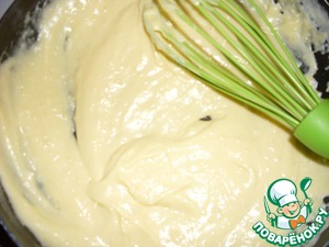 Добавляем сливки и 2 желтка и увариваем до загустения