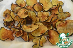 4. Кусочки баклажана пожарить в растительном масле 5 минут до золотистого цвета (глубокая жарка). Обсушить на салфетках, чтобы ушел лишний жир.