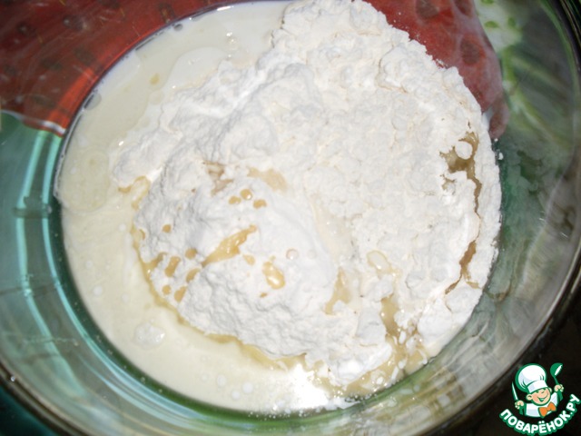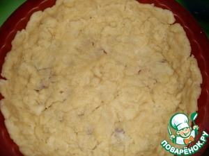 Замешиваем тесто, равномерно распределяем его по форме (диаметр 26 см), включая стенки