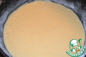 Сразу же переложите тесто в форму и разровняйте. Выпекайте 25-30 минут в разогретой до 175 С духовке. Чтобы бисквит пружинил при нажиме.