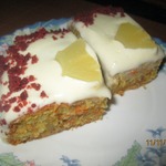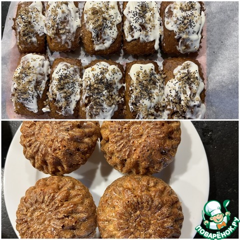 [+5]Ананаса не было, заменила пюре из свежего яблока. А глазурь сделала из сметаны с сахарной пудрой и лимонным соком, так как сливочного сыра не оказалось под рукой. Все хорошо застыло в холодильнике. Ещё, кстати, апельсиновый сок по ошибке вылила в тесто. Оказалось очень вкусно. Кексики вышли сочные. Гости вчера ели, а сегодня рецепт попросили