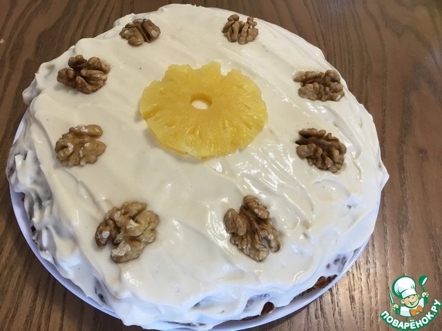 И украсить целыми орехами и кусочками ананаса. Убрать в холодильник, пока глазурь не застынет.