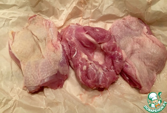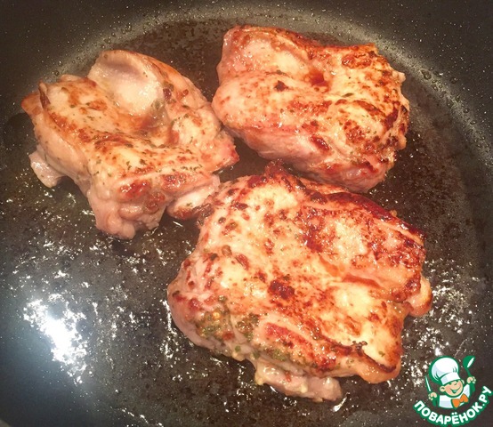 Достаньте мясо. На подсолнечном масле обжарьте окорочка безкостные. Они прожарятся моментально!