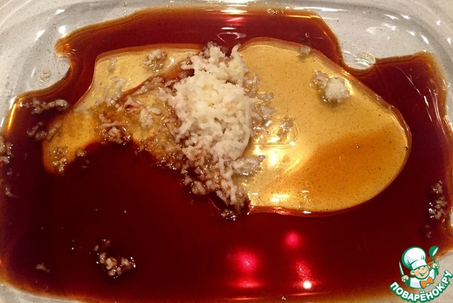 Смешать мёд+соевый соус+вино +Чили+1ст. л. тимьяна +эстрагон.