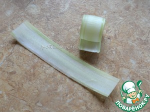 С сельдерея срезать тонкие ломтики.