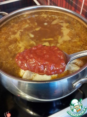 Теперь добавьте запеченную капусту и варите еще 10-15 минут