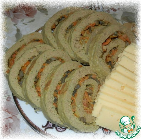 Вкусное и простое блюдо — печёночный рулет из говяжьей печени с овощной начинкой. Красивый цвет рулету придает морковка, а поджаренный лук вместе с морковью и соевым соусом – дополнительный вкус.
