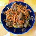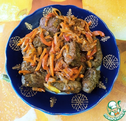 Как хочется иногда съесть чего-то необычного, яркого, из далеких стран принесенного! Но..., чтоб не слишком хлопотно было приготовить, и редкие продукты выискивать не пришлось... Это именно такое блюдо из всеми знакомого и не особо деликатного продукта, да и печень я особо не жалую. Готовила, скажу честно, без энтузиазма, из соображений пользы и любопытства. Ошибалась, однако... Очень достойное блюдо из говяжьей печени, - яркое, пряное, ароматное! Ах, как она, эта самая печень, хороша в теплом состоянии! Да и салатик, особо приготовленный, ненавязчиво подчеркивает азиатскую вкусовую нотку. Советую приготовить, не пожалеете.
