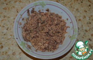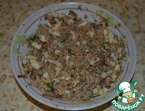 Все компоненты начинки соединяем и перемешиваем, не солим!