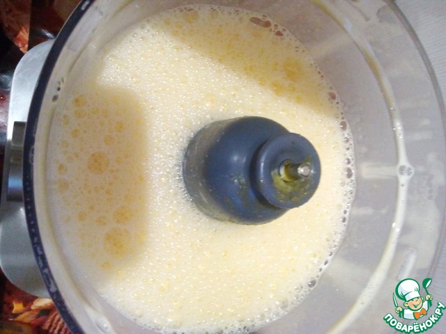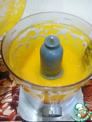 Добавить кефир и пюре из тыквы. перемешать всё до однородной массы.