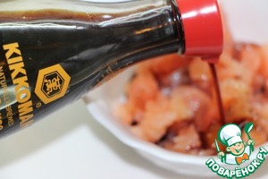 Выложить форель в миску и добавить соевый соус Киккоман, дать настояться 15 минут.