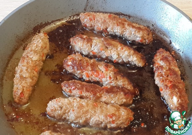 На раскаленном масле обжарьте чевапчичи с двух сторон.