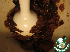 Затем слить воду. Сухофрукты выложить в чашу блендера и измельчить до однородности.
