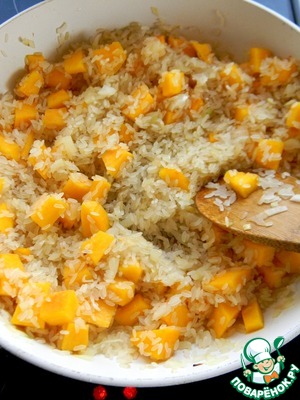 На растительном масле обжарить лук и тыкву, пару минут.