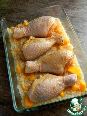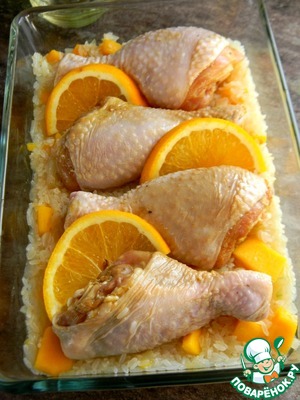 Рецепт «Цитрусовая курица на рисово-овощной подушке»: