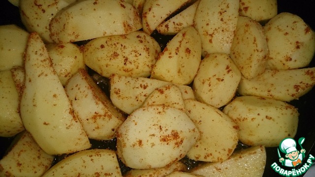 В отдельной посуде смешать панировочные сухари, паприку, перец и соевый соус (1ст. л)Обвалять картофель в этой смеси.