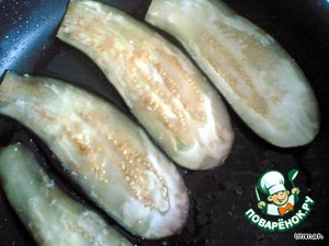 Нарезанные баклажаны обжарить на растительном масле с обеих сторон.
