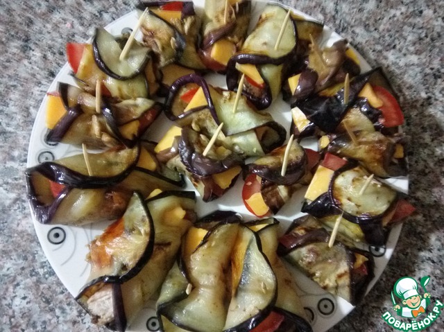 Закрепить каждый получившийся рулетик, выложить на сковороду или блюдо и поставить на 5 мин в разогретую духовку или микроволновку. За это время сыр должен слегка расплавиться.