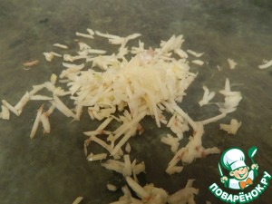 Трём чеснок и добавляем к полученной смеси овощей и мяса