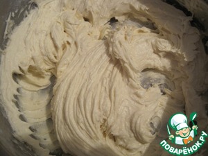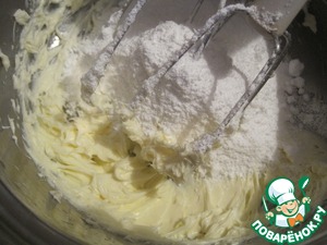 Добавляем сахарную пудру, муку и слегка взбитые белки и замешиваем тесто