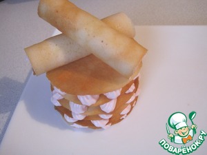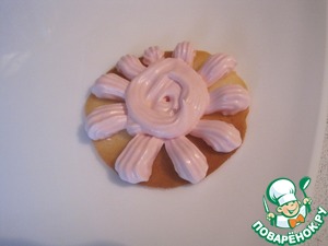Собираем пирожное. На круглый полуфабрикат осаживаем крем