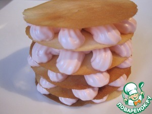 Очень вкусный десерт из очень нежного и хрустящего теста и крема с малиновым ароматом. При легком надавливании вилкой пирожное надламывается и вы полностью сможете ощутить легкий хруст и нежный аромат малины