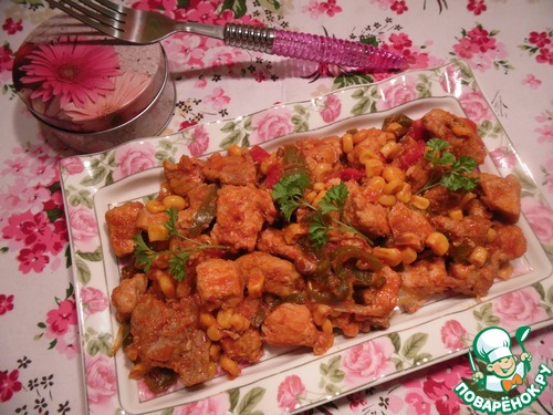 Для мясного рагу с овощами можно брать любое мясо и практически любые овощи. Мой вариант состоит из свинины, кукурузы и перца - традиционное сочетание для блюд мексиканской кухни. А особую пикантную нотку блюду придает соевый соус ТМ "Kikkoman".