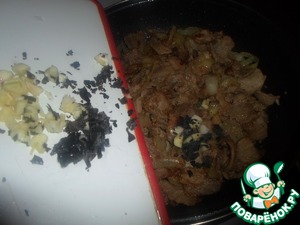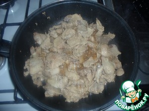 На раскаленную с маслом сковороду, всыпаете все мясо, и первые 10 минут готовите на маленьком огне.