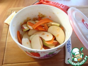 Пока курица румянится, яблоко и морковь немного замаринуются.