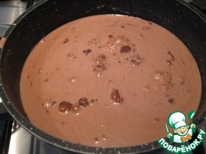 Шоколад поломать на кусочки, добавить в горячий крем, тщательно размешать до растворения шоколада.