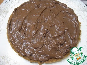 Смазать кремом. Накрыть вторым коржом, повоторить действия, как с первым коржом.