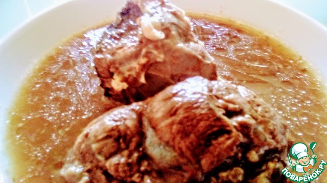 И не стоит упираться в указанный срок тушения. Тушить до мягкости и не обязательно в духовке, можно на медленном огне. Следить за наличием достаточного кол-ва жидкости. При необходимости - понемногу доливать (ближе к концу, но не в самом конце, минут за 20, можно плеснуть портвейна