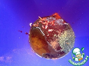 Добавить все специи и чеснок, пропущенный через пресс. -