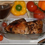 Курицу с маринадом выложить в форму для запекания и отправить в духовку на 30-40 минут при 200*С
