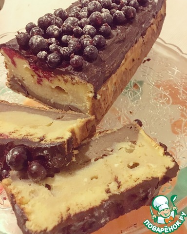 Готовый кекс остудить, вынуть из формы, украсить сверху растопленным шоколадом (с 1 ст. л. молока) и мелкой ягодой. Ягоду предварительно разморозить, обсушить и кладем сразу на теплый шоколад.
