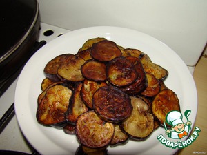Также кружочками обжариваем синенькие, все отдельно на тарелочки отложить.