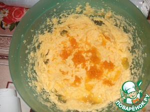 Добавить сок и цедру апельсина, хорошо перемешать.