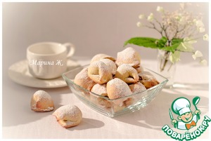 За счет того, что по вкусу тесто для печенья несладкое, напоминает песочно-слоеное, а начинка в меру сладкая с легкой кислинкой яблок, вкус подушечек необыкновенно хорош.